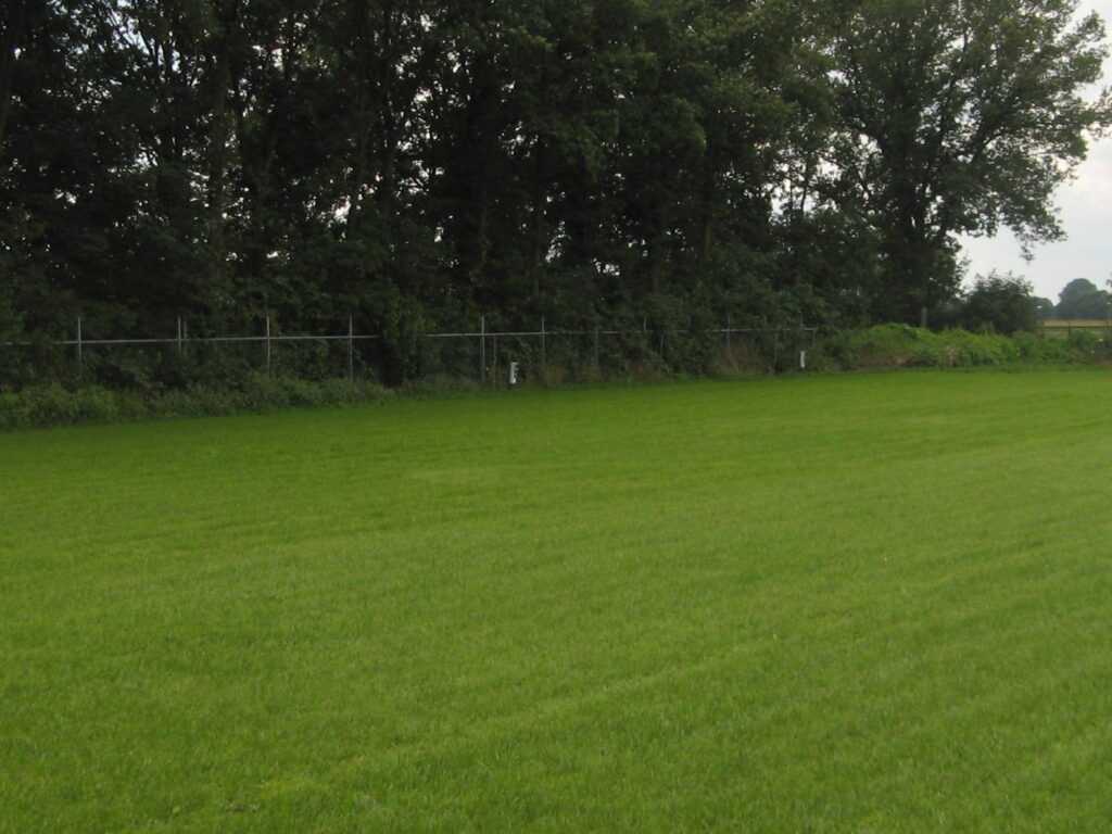 We hebben het veld ingezaaid met een grasmengsel voor sportvelden. De bodem is stevig en heel goed waterdoorlatend. In al die jaren heeft nog nooit een caravan of camper vastgezeten.